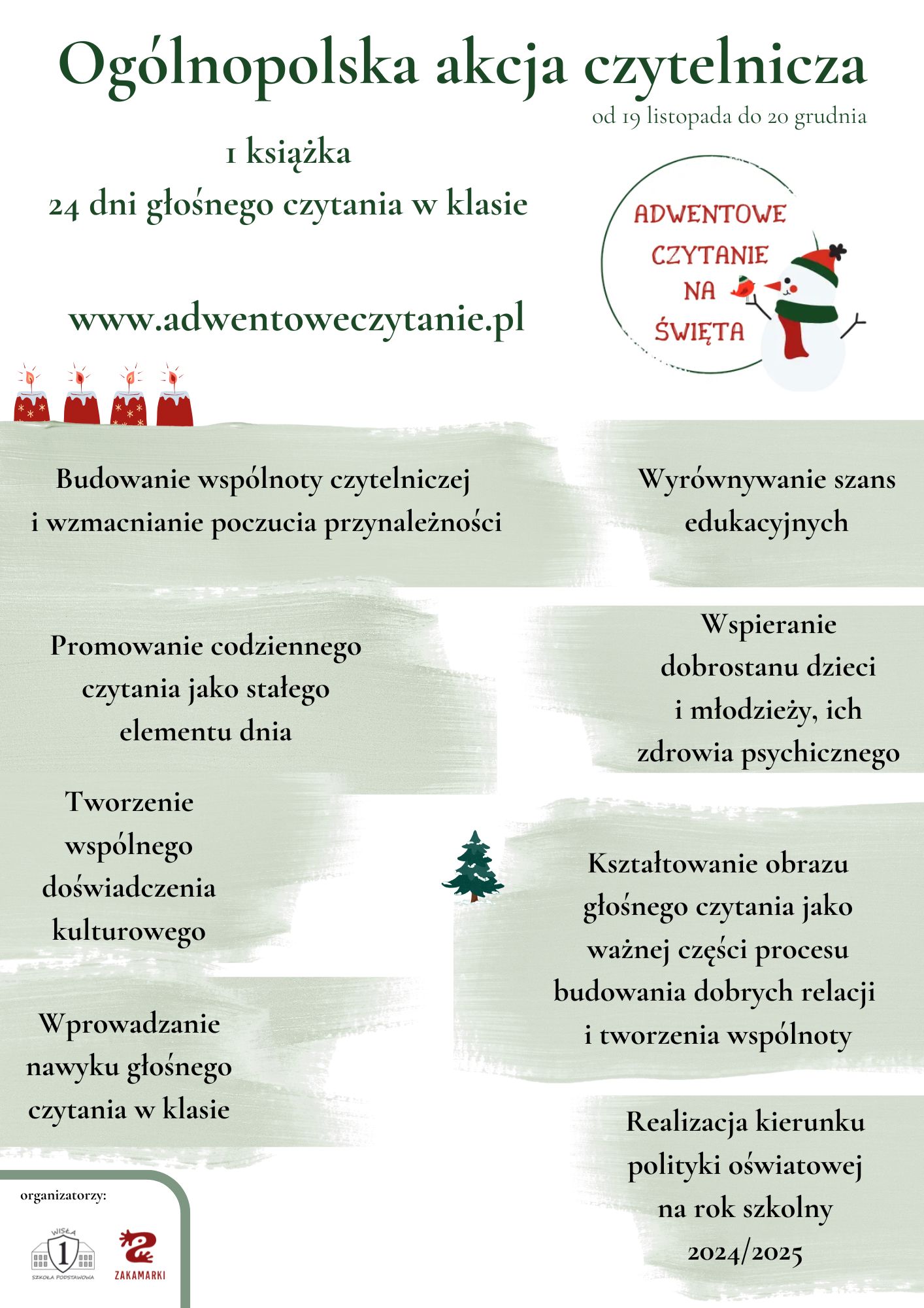 Już pod koniec listopada uczniowie klas młodszych dołączyli do Ogólnopolskiej akcji czytelniczej „ Adwentowe czytanie na Święta”.