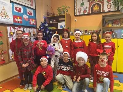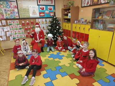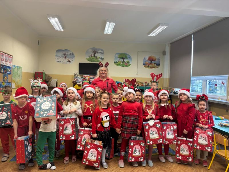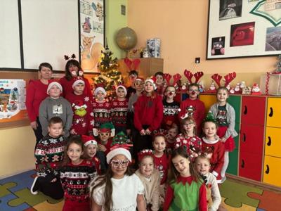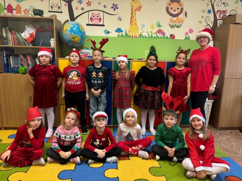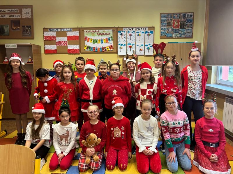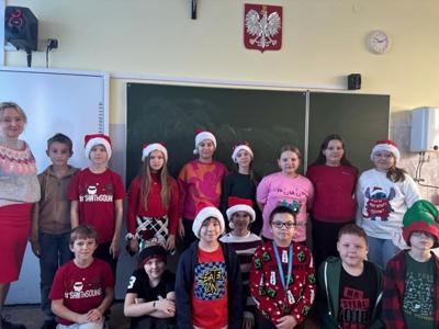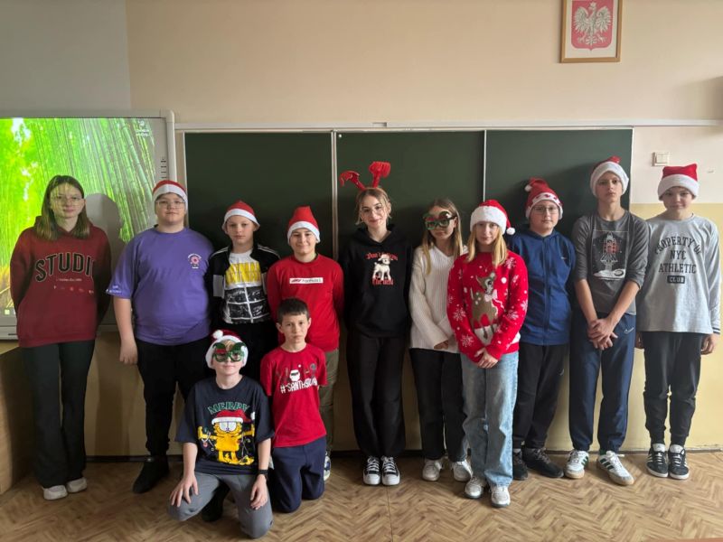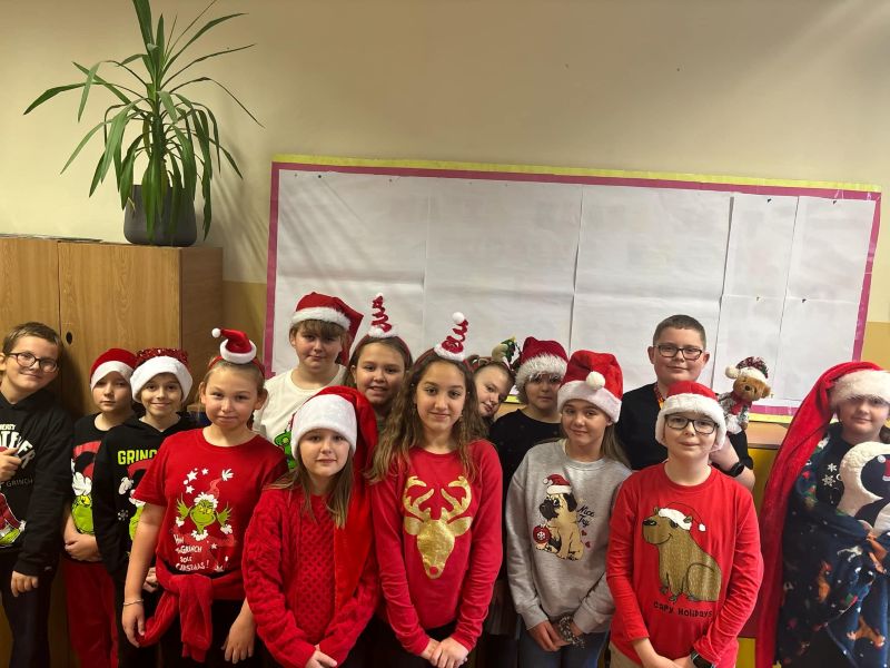 Dnia szóstego grudnia odbyła się zabawa mikołajkowa zorganizowana dla klas 0-3 oraz 4-8! Uczniowie, którzy przebrali się w mikołajkowe stroje, przyciągają wzrok i wprowadzają wszystkich w świąteczny nastrój. Z czerwonymi czapkami, brodami i uśmiechami na twarzach, uczniowie tworzą niezapomnianą atmosferę pełną magii i ciepła. To wspaniała okazja, by poczuć się jak Święty Mikołaj, a jednocześnie pokazać, jak kreatywność i tradycja mogą łączyć się z zabawą!