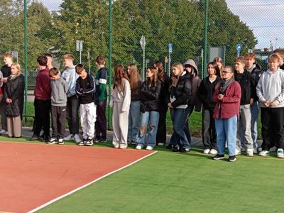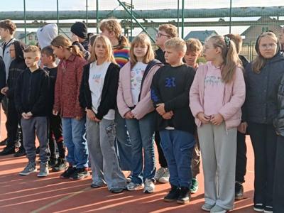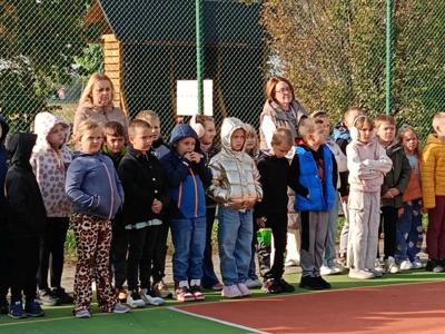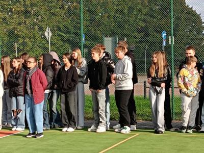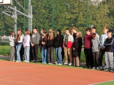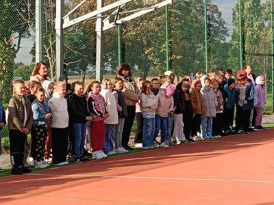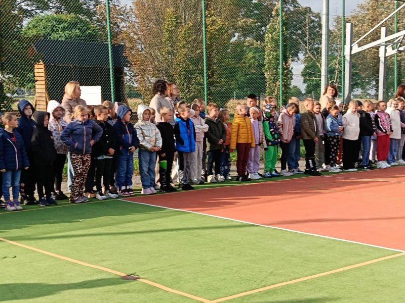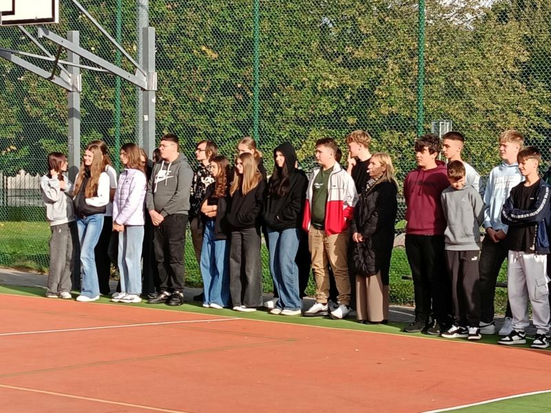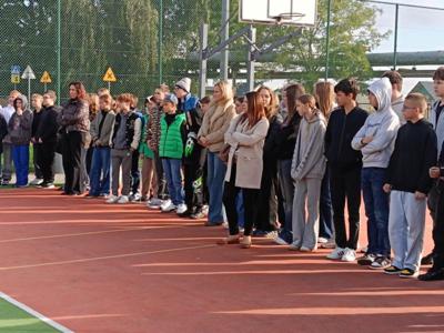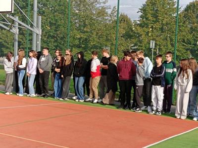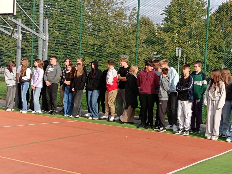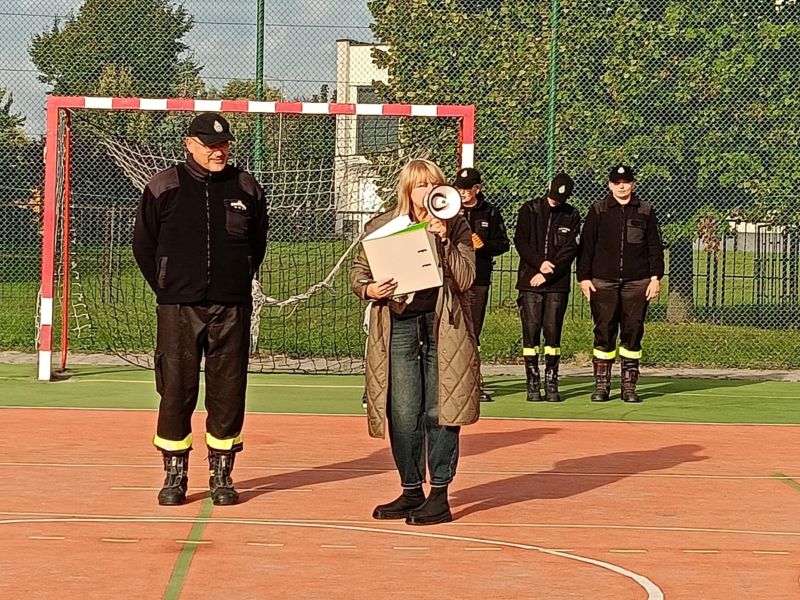 Po ogłoszeniu sygnału alarmowego, ewakuację rozpoczęto zgodnie z obowiązującymi procedurami. Wszystkie klasy wraz z nauczycielami opuściły budynek szkoły wyznaczonymi drogami ewakuacyjnymi i udały się na miejsce zbiórki – nad prawidłowym przebiegiem czuwa pani dyrektor D. Sylwestrzak