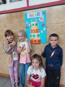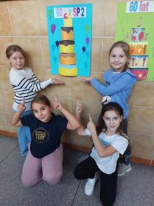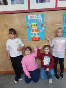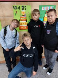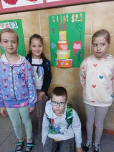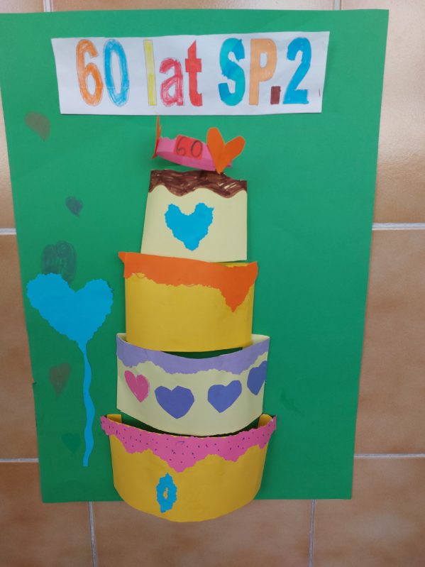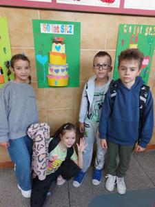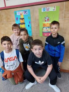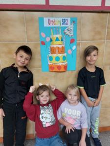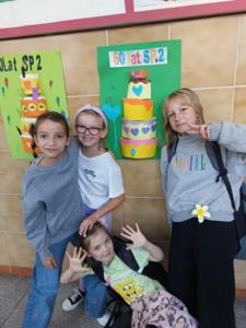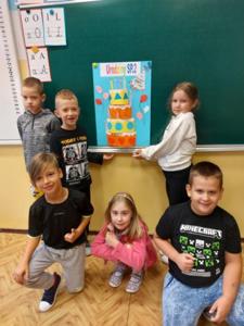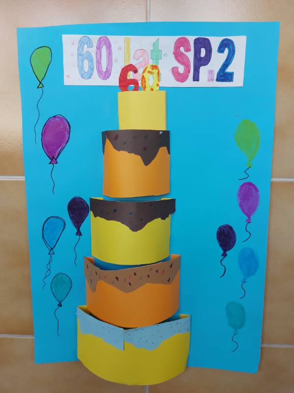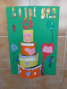 Uczniowie klasy 3 i 1 a podczas zajęć rozwijających kreatywność pracowali w grupach i przygotowali pracę plastyczną na temat "Urodzinowy tort dla naszej szkoły". Poznali najważniejsze wydarzenia z historii Dwójki.