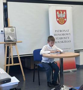 Naszą szkołę reprezentowało dwoje uczniów: Antonina Stefańska IV b i Stanisław Protopopow IV a. Podczas konkursowych zmagań uczestnicy interpretowali fragmenty książki Adama Wajraka „Lolek” - opowieści o przyjaźni i miłości do zwierząt.