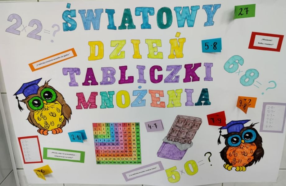 21 listopada to Światowy Dzień Tabliczki Mnożenia, z tej okazji uczniowie naszej szkoły włączając się w akcję przygotowali przepiękne tematyczne plakaty, uczestniczyli w I etapie Szkolnego Konkursu o tytuł Mistrza Tabliczki Mnożenia. Ponadto zgodnie z tegorocznym hasłem "Młodsi sprawdzają, jak dorośli tabliczkę mnożenia znają" podczas przerw między lekcjami czynili to.