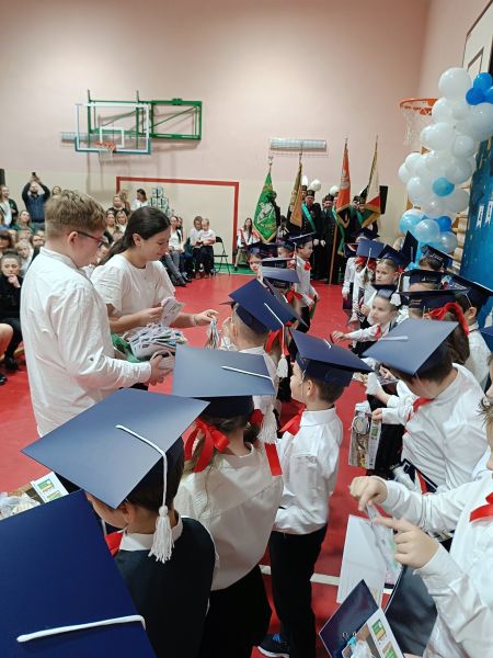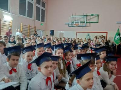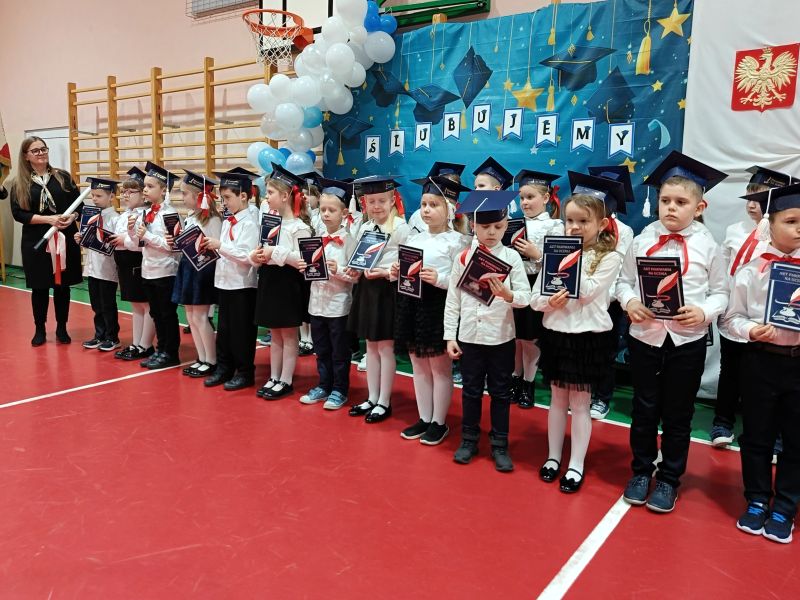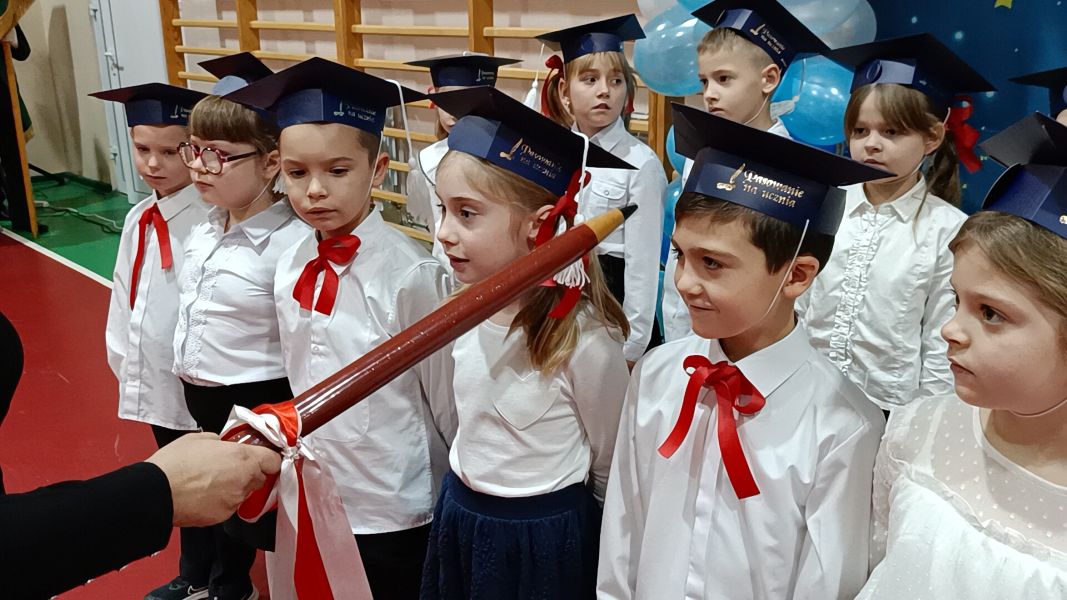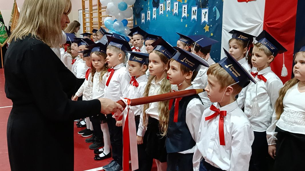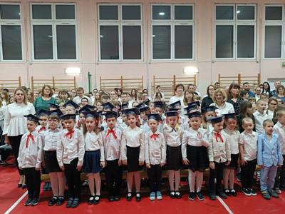 Dziś w naszej szkole odbyła się uroczystość z okazji Dnia Patrona połączona ze ślubowaniem uczniów klas pierwszych. W podniosłej oprawie, z udziałem dyrekcji, grona pedagogicznego, wychowawców oraz zaproszonych gości — rodziców i starszych kolegów — pierwszoklasiści zostali oficjalnie przyjęci do społeczności szkolnej.