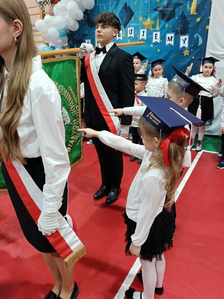 Uroczystość rozpoczęło wprowadzenie sztandaru, a następnie wspólne odśpiewanie hymnu państwowego. Nowi uczniowie, ubrani w odświętny strój, złożyli uroczyste ślubowanie — stanowiące zobowiązanie do przestrzegania wartości szkoły, szacunku do nauczycieli, kolegów oraz pilnej nauki.