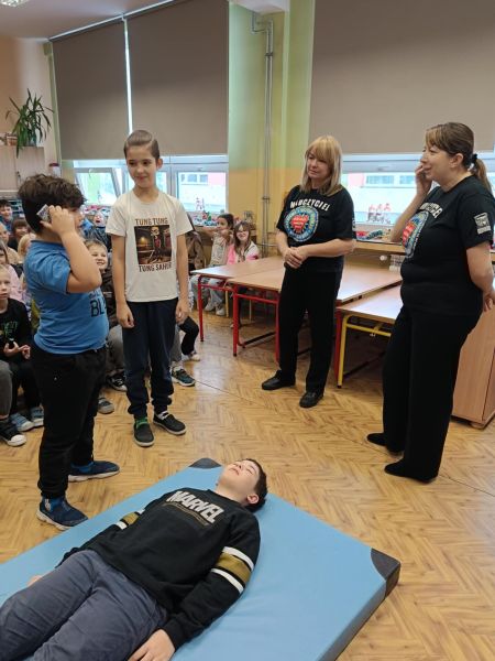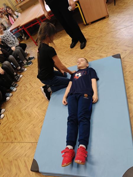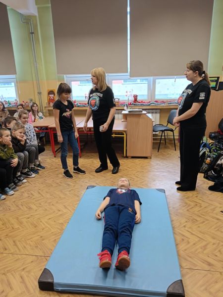 Zajęcia z zakresu I pomocy prowadzimy od 2008 r., a ich celem jest wyposażenie dzieci w podstawową wiedzę i umiejętności z zakresu udzielania pierwszej pomocy przedmedycznej, a także znoszenie barier, rozbudzanie empatii i wzajemnego zrozumienia, wzmocnienie pewności siebie, wiary we własne siły i umiejętności. Dzieci chętnie i aktywnie uczestniczyły w tej niecodziennej lekcji.